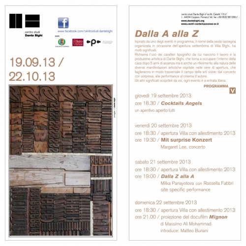 - sabato 21 settembre ore 19:00 / DALLA Z ALLA A / site specific performance / Milka Panayotova con Rossella Fabbri