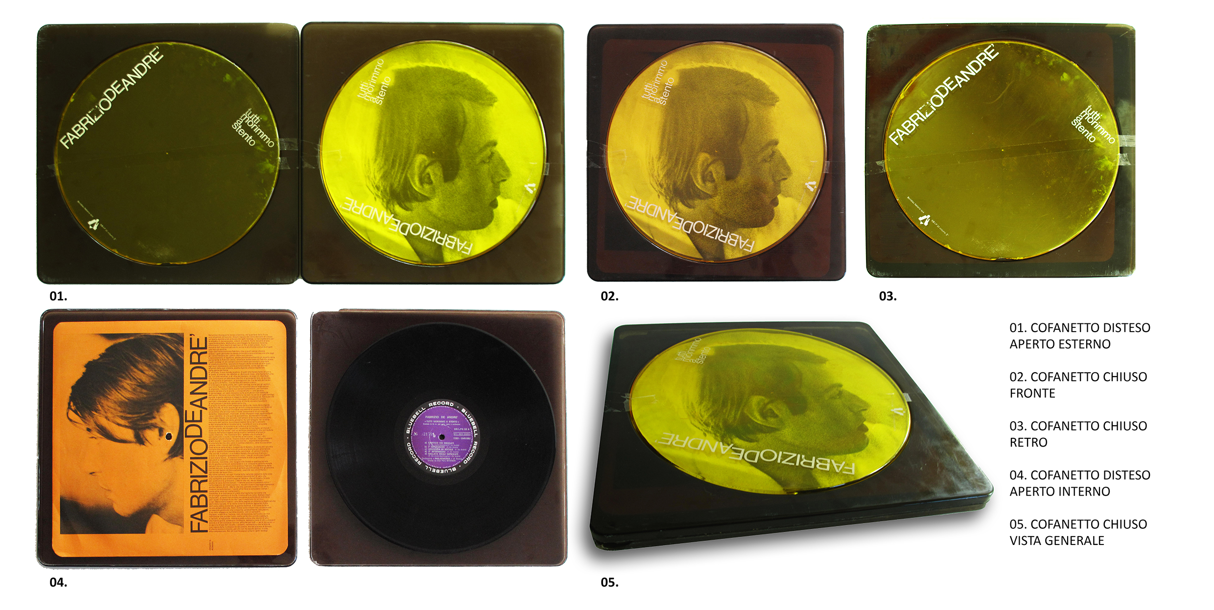 Si tratta infatti di un prezioso cofanetto ideato e realizzato nel 1968, per contenere il vinile di Tutti morimmo a stento, secondo album di Fabrizio De André, pubblicato dalla Bluebell Records.