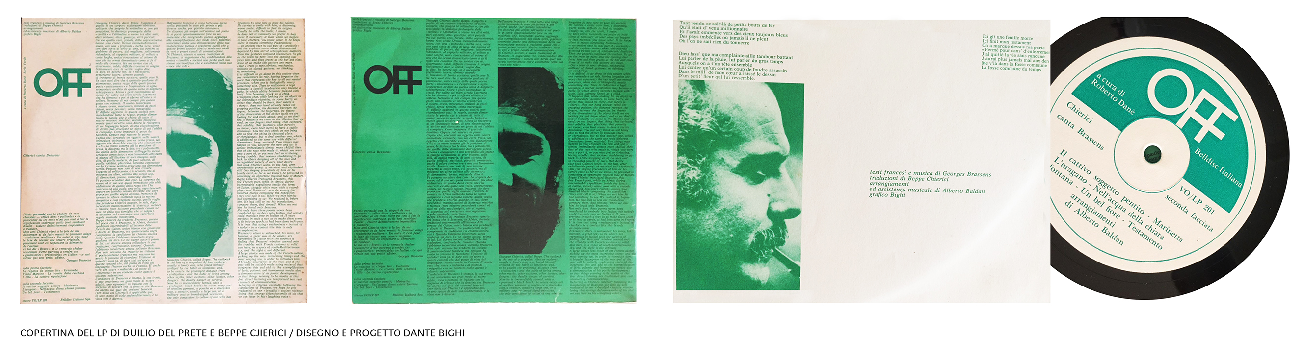La realizzazione di questo cofanetto non tratta solo di una produzione artistica, è anche testimonianza di una lunga amicizia, che proprio negli anni ’60 nacque e si consolidò, tra il grafico Bighi e l’amico Antonio Casetta, fondatore nel 1959 della casa discografica Bluebell, quindi Belldisc entrambe confluite nel 1970 nella Produttori Associati per la quale Dante Bighi realizzò il logotipo usando in questo caso l’amato carattere tipografico Avant Gard. Negli stessi anni inoltre, per l’etichetta di ricerca sperimentale “OFF”, il cui marchio fu sempre progettato e realizzato da Bighi (1970), egli disegnò altre copertine di LP di Duilio Del Prete e Beppe Chierici che cantava Brassens.