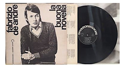 E poi ancora per la Produttori Associati disegnò nell’autunno del 1970 (2a edizione Produttori Associati – 1a tiratura fotografia bianco e nero) la grafica della copertina del LP e concept album tratto dai Vangeli apocrifi La buona novella. Anche in questo caso il linguaggio di Bighi è evidente nei continui ritorni a capo dopo ogni singola parola, nel gioco tipografico delle 3 “a” del titolo, e nell’allineamento delle bacchette delle singole lettere componenti il nome di Fabrizio De André in minuscolo con carattere helvetica bold-type.